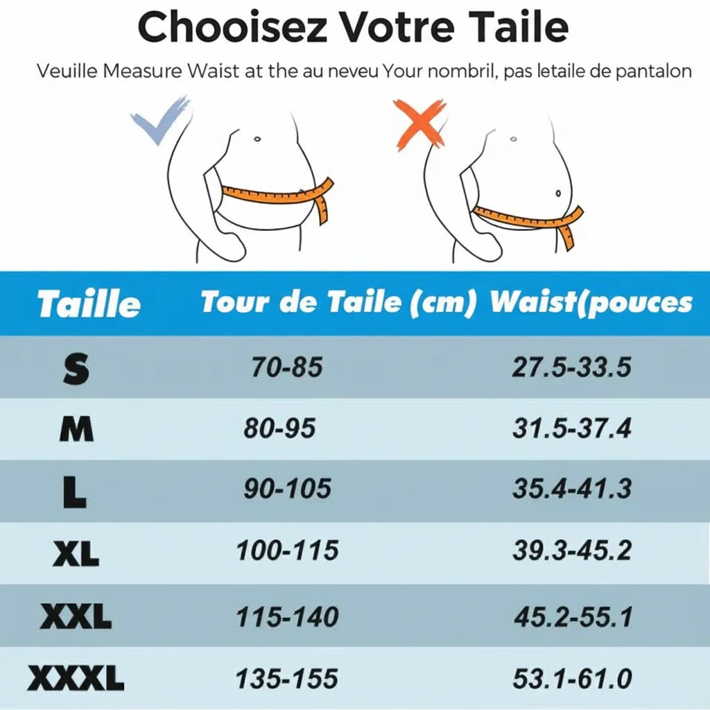 C'est simple! Consultez notre guide des tailles rapide sur la page produit. Mesurez votre tour de taille et trouvez l'ajustement parfait pour un soutien optimal et un confort maximal. Nous sommes là pour vous aider!