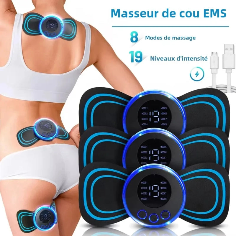 Il utilise la technologie EMS pour stimuler en douceur vos muscles, améliorant la circulation et relâchant les tensions. C'est comme avoir un masseur professionnel à portée de main, simple à utiliser.